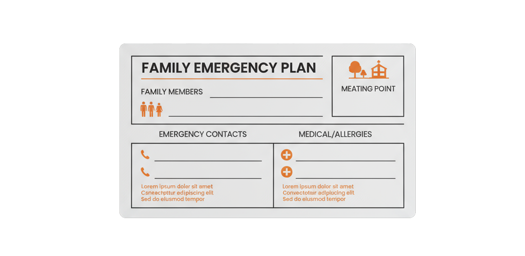 Checklist rápido: heridos, fuga de gas, electricidad, ruta de salida, punto de reunión.